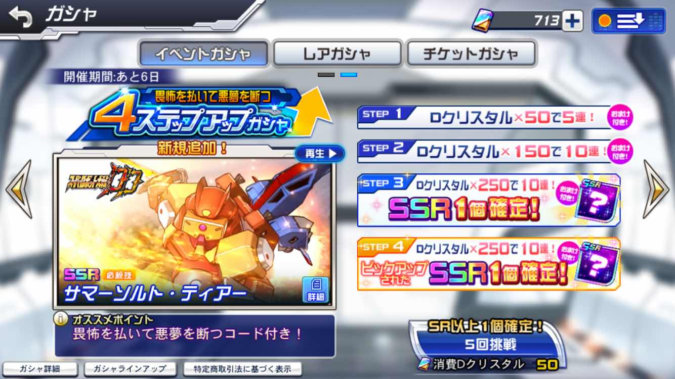 ってなわけで、戦力上げにサマーソルトティアー欲しさにガチャしてみました!