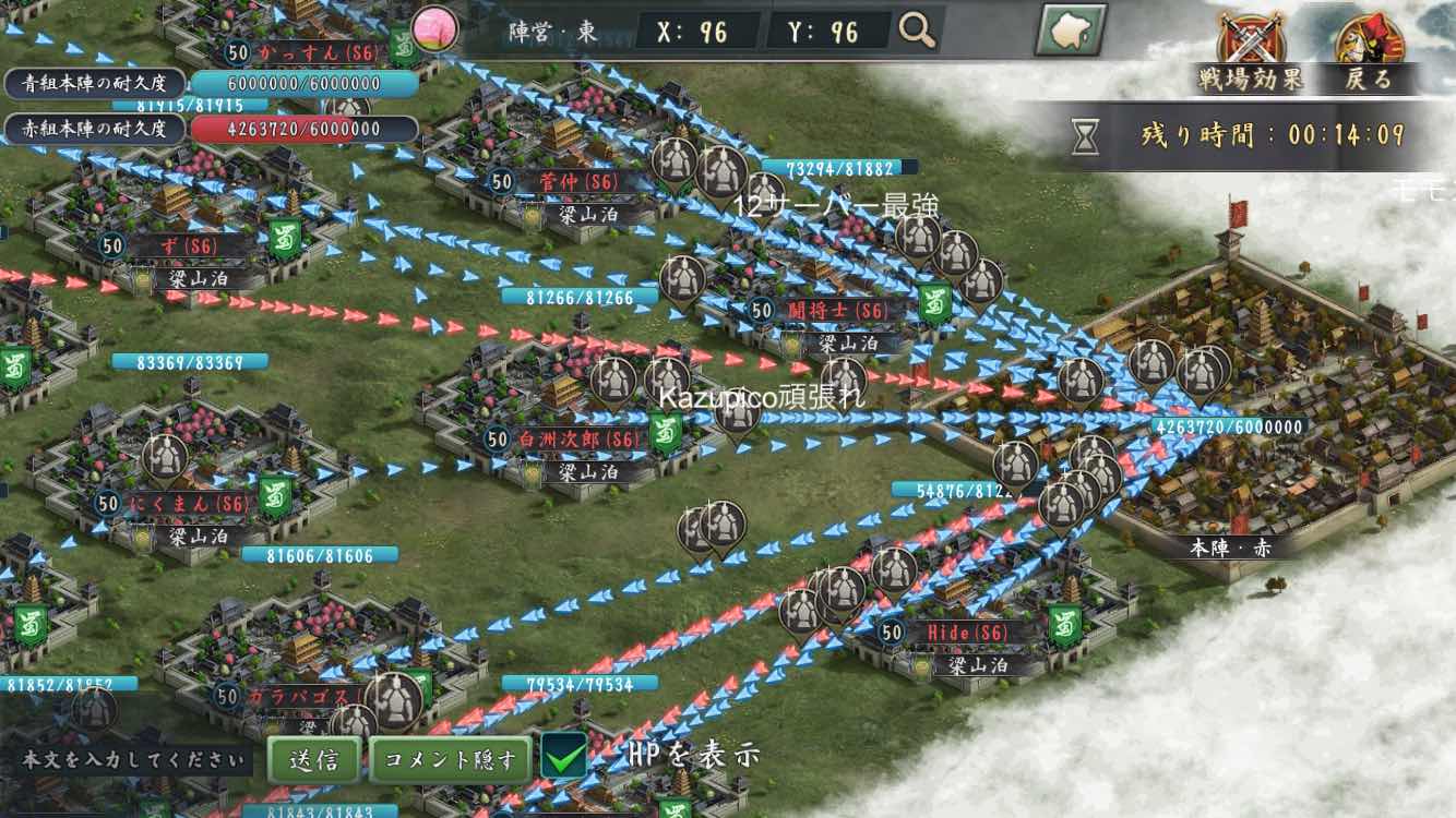 攻撃、守備の配置だけではなく、城が飛ばされてこの状況の時は、この人はこう動くみたいな感じなのが色々と決まってるかのように上手く動いていますね。